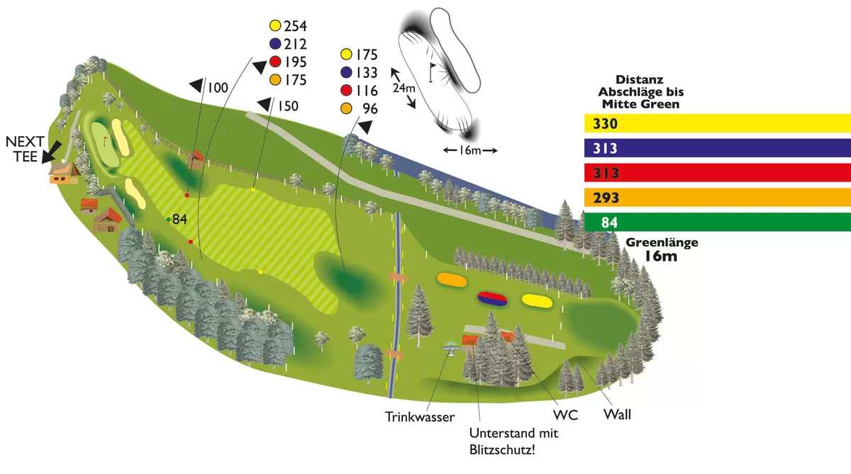 Tipp von Head Pro Adam Fisher: Vom hinteren Abschlag, ähnlich einem Adlerhorst, muss man dieses Hole geschickt spielen. Ihr Angriff auf das "briefmarkengroße" Grün muss genau sein, denn es ist mit Bunkern kurz davor und mit "out" dahinter gut verteidigt. Freuen Sie sich über Ihr Par.