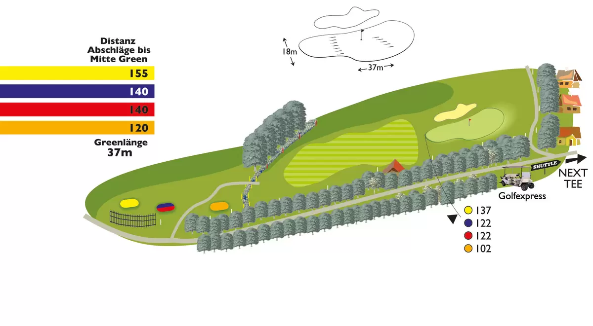 Tipp von Head Pro Adam Fisher: Ein einfaches Par 3 am Ende der "Front Nine", aber Vorsicht! Out an der rechten Seite.